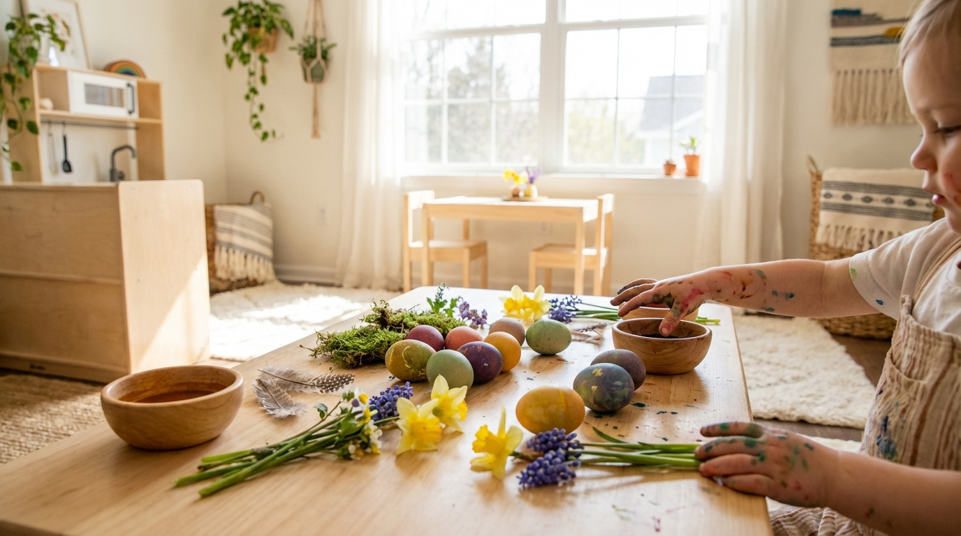 Avoid the template trap. Pre-cut Easter shapes handed to a group of children remove almost every meaningful decision from the process. Open-ended materials — paint, clay, natural objects — return that agency to the child, which is where developmental value is generated.